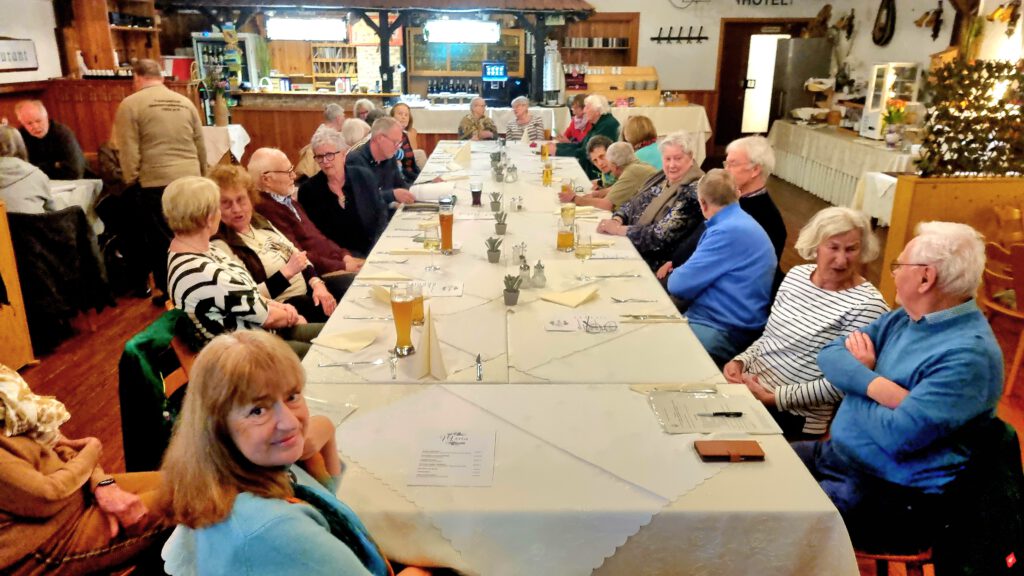 Trotz schwierigen Witterungsverhältnissen startete die erste Rucksackwanderung pünktlich am Mittwoch, dem 07.01.2026 um 11:15 Uhr zum „Tischlein deck dich“ auf den Altkönig-Gipfel 798m hoch. Dort wurde die neue Bank, die der Taunusklub Niederreifenberg allen Wanderfreunden zum Verweilen gespendet hat, mit vielen Köstlichkeiten bestückt. Leider war die Bank mit fremden Zeichen bemalt, aber Gott sei dank nicht ramponiert!